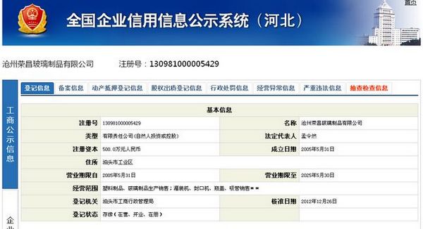 2、證件查詢:如果玻璃瓶廠家距離太遠,無法實地考察,建議首先考察供應商的營業(yè)執(zhí)照, 稅務登記證,組織機構代碼證等。