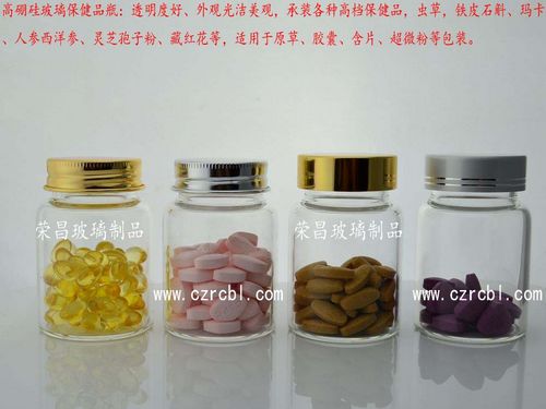 高硼硅玻璃瓶透明度高,通透性極好,是高檔保健品的理想包裝,適用于各種冬蟲(chóng)夏草,鐵皮石斛、瑪咖、人參西洋參、靈芝孢子、海參等。