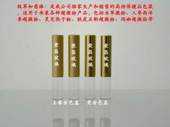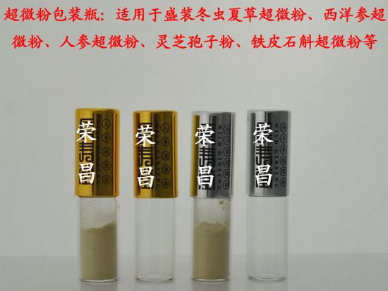 超微粉玻璃瓶采用進口食品級別高硼硅玻璃制造而成,外形美觀大方,瓶蓋可印刷logo。有多種規(guī)格和瓶型供您選擇,也可以根據貴公司的需求進行開模制造。純粉玻璃瓶適用于盛裝各種超微粉保健品,包含冬蟲夏草超微粉、西洋參超微粉、靈芝孢子粉、鐵皮石斛超微粉等。