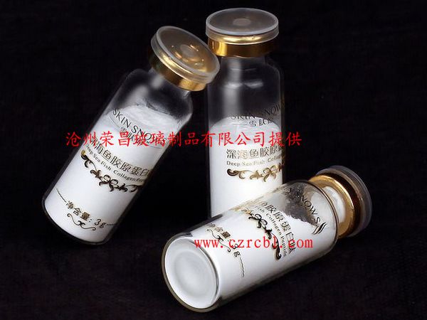 我公司專(zhuān)業(yè)設(shè)計(jì)生產(chǎn)各種高檔的藥用和食品級(jí)別玻璃瓶包裝,服務(wù)于眾多高檔保健品企業(yè)。我公司有國(guó)家食品藥品監(jiān)督管理局頒發(fā)的“藥包材注冊(cè)證”,玻璃瓶質(zhì)量放心,本地區(qū)只有我們一家有此證書(shū)。我公司膠原蛋白包裝瓶系列主要有:膠原蛋白粉瓶,膠原蛋白原液瓶和膠原蛋白口服液瓶,可為客戶(hù)提供燙金、印刷、烤花和蒙砂等工藝,并可配套提供各種高檔規(guī)格的電鍍鋁蓋和瓶塞等,榮昌公司愿意以最大的熱情服務(wù)廣大客戶(hù),歡迎客戶(hù)來(lái)廠考察,來(lái)電咨詢(xún):0317-8334508。
