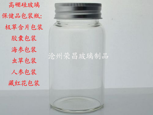 蟲草含片包裝瓶采用食品級別高硼硅玻璃管制造而成,透明度好,光滑度高,非常適用于盛裝高檔保健品,包含冬蟲夏草,極草含片、膠囊、瑪咖精片、鐵皮楓斗、海參、靈芝孢子粉、藏紅花等。